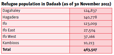 mcsweeney table 1The Dadaab refugee complex in north-east Kenya was established in 1991. Originally designed to accommodate 90,000 refugees, the camps now hold over five times their intended capacity, making Dadaab the third-largest population centre in Kenya after Nairobi and Mombasa. The region is remote and harsh, with temperatures of up to 48 degrees Celsius in the dry season and extreme flooding in the rainy season. The main Dadaab complex consists of the ‘older’ Dagahaley, Hagadera and Ifo refugee camps, with three further sites, Ifo East and Ifo West (combined they are known as Ifo 2) and Kambioos. These sites are being developed to help cope with the influx of over 154,000 people in the past 12 months, bringing the total population to over 463,000. The refugee population is largely Somali (95%), with small numbers of Sudanese, Ugandans, Eritreans and Ethiopians.