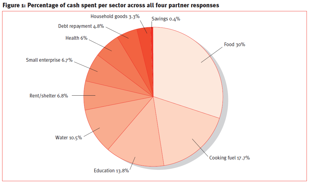 Figure 1 illustrates the wide range of things beneficiaries did with the cash they received. A more traditional in-kind response could not have met such a diverse range of priorities.